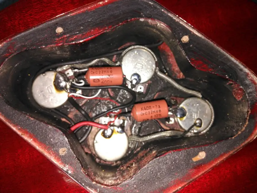 Verificamos, limpiamos y ajustamos la electrónica, incluyendo las pastillas, los potenciómetros y los selectores.